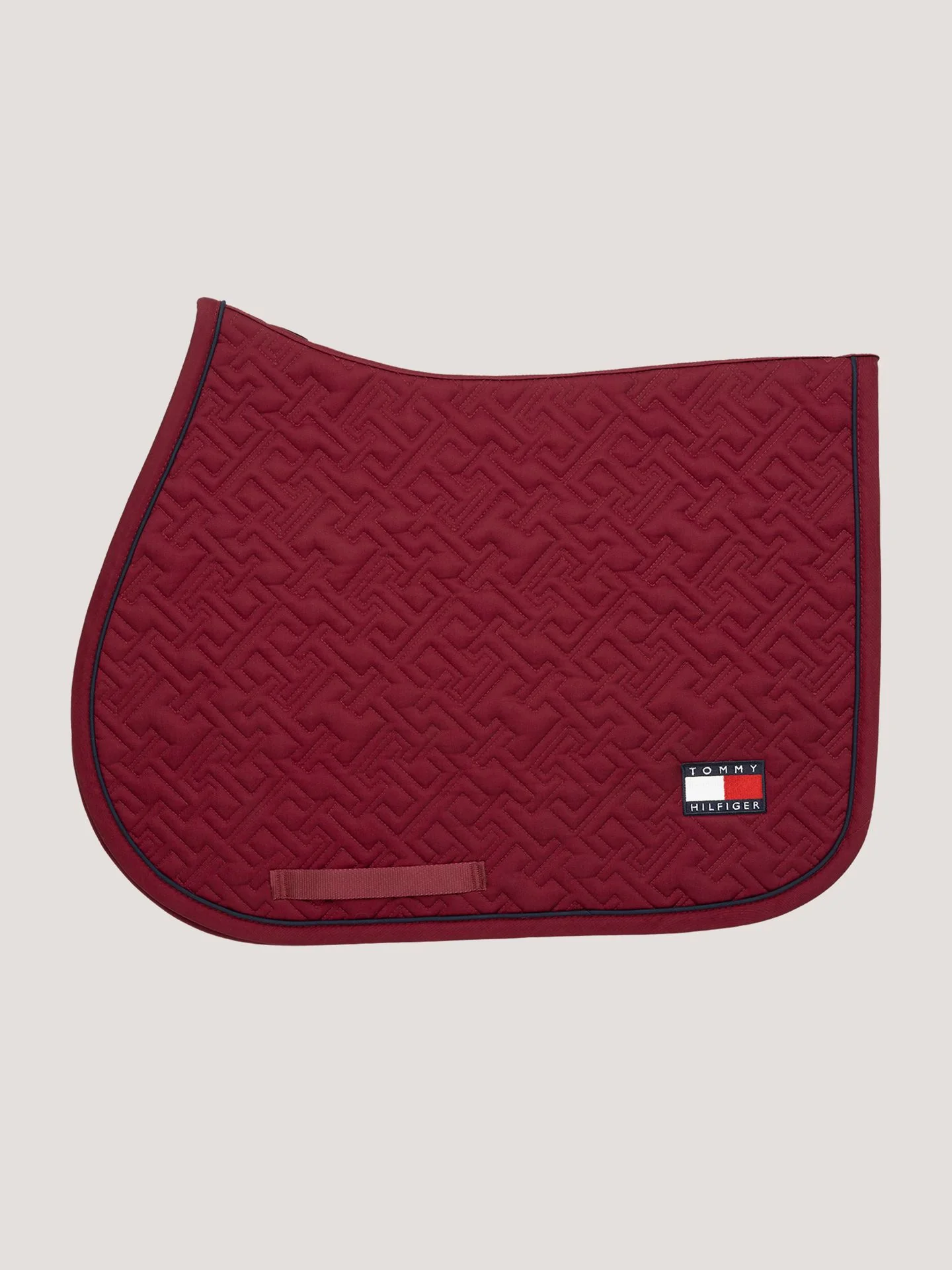 Le tapis de selle Oxford est un tapis de selle matelassé emblématique de coupe de dressage avec un cordon blanc classique au bord de la reliure.
