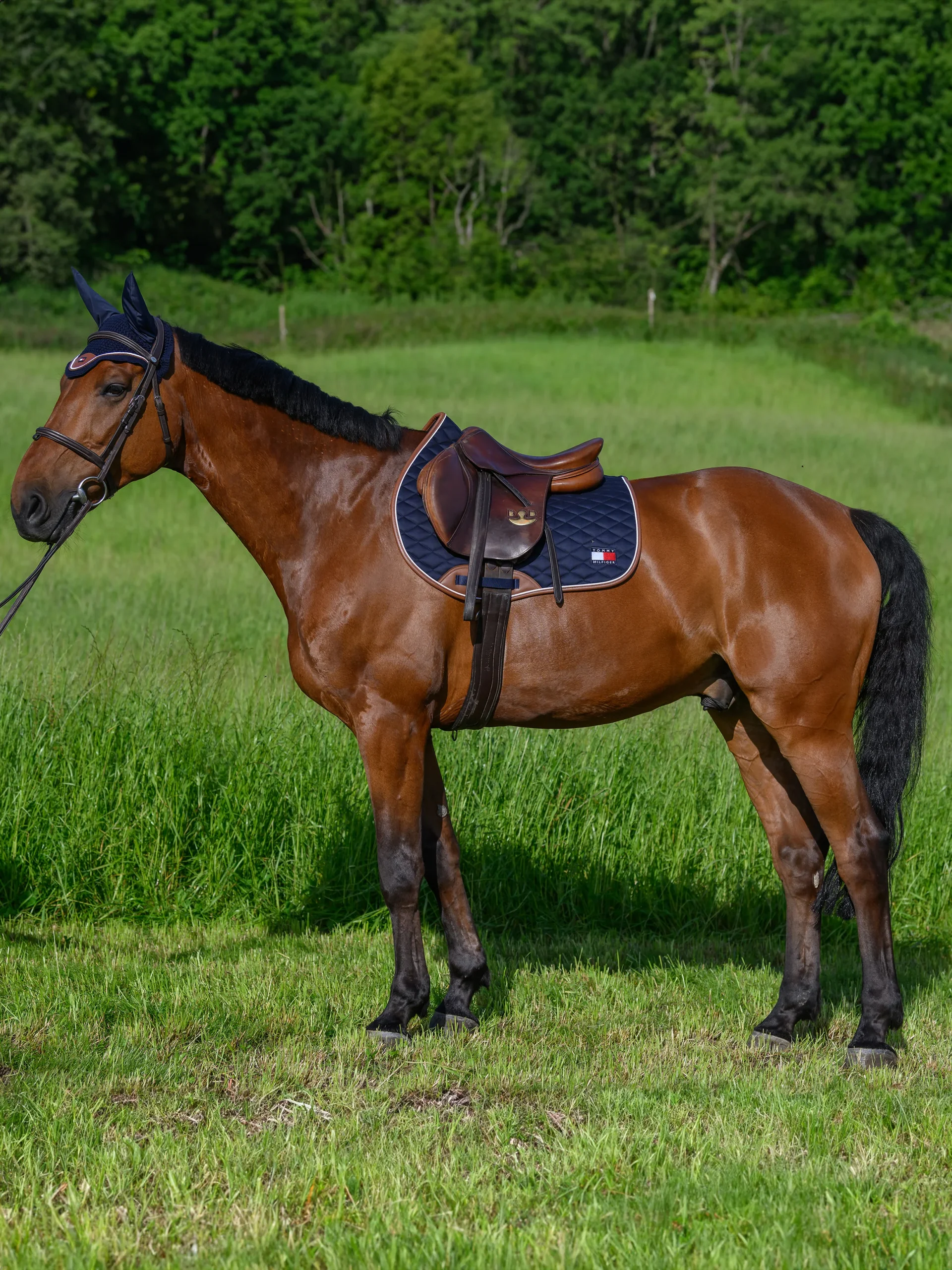 Tapis de selle avec garniture en simili cuir et matelassage classique en losanges