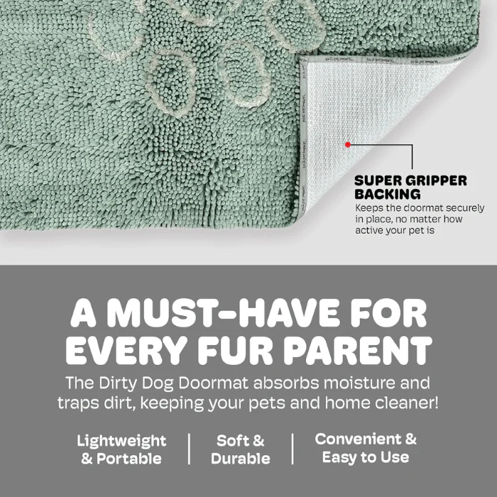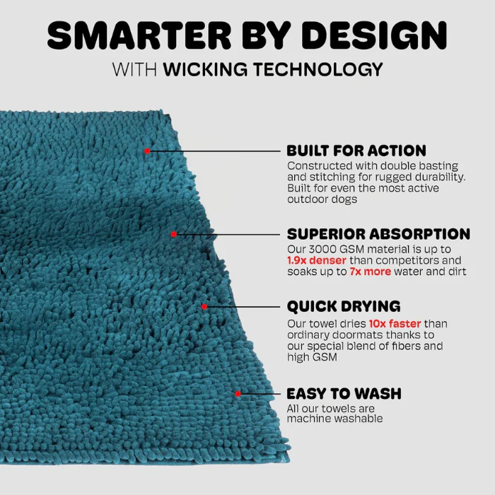 Le tapis polyvalent peut être utilisé comme tapis de porte, également dans les voitures, dans des cages et sous des bols à nourriture et à eau, ou dans tout autre endroit permettant de maintenir votre environnement propre. Notre technologie brevetée de microfibres avancées emprisonne instantanément l’eau, la boue et la saleté. Ratio GSM (grammes par mètre carré) le plus élevé des produits concurrents. Taux de densité d’absorption le plus élevé des produits concurrents. La matière pelucheuse et veloutée est douce pour les pattes des animaux domestiques. Super Gripper Le support antidérapant l’aide à rester en place. Facile à nettoyer et lavable en machine, suspendre pour sécher. Recueille la saleté et l’eau jusqu’à 15 fois son poids.