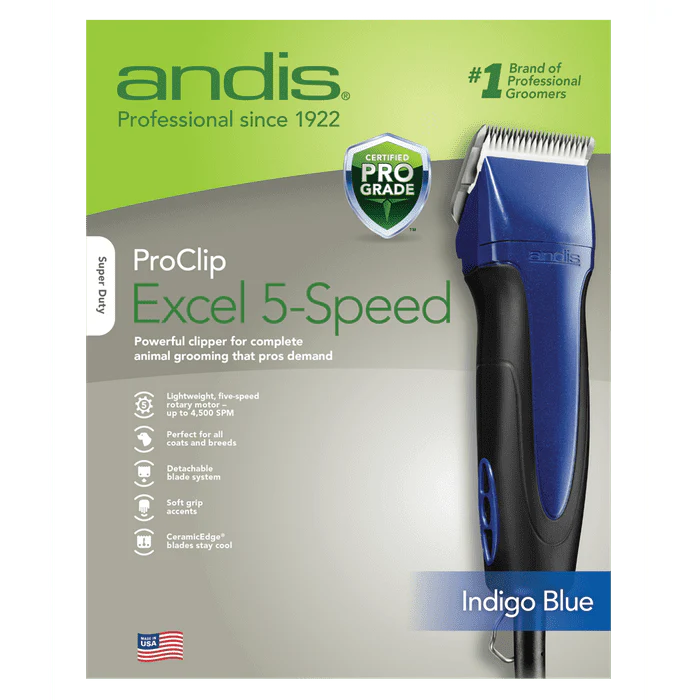 Le rasoir rose Pro Clip Excel comporte un moteur rotatif puissant à cinq vitesses, effectuant de 2,500 à 4,500 coups précis par minute. Les vitesses plus basses offre une coupe fraîche, idéale pour les régions sensibles et les animaux nerveux. Les hautes vitesses sont parfaite pour les noeuds, les pelages épais ou le travail rapide. Cette tondeuse confortable est recouverte d’une surface anti-dépendante. Elle est compatible avec la majorité des lames détachables et elle est vendue avec une lame CeramicEdge #10.
