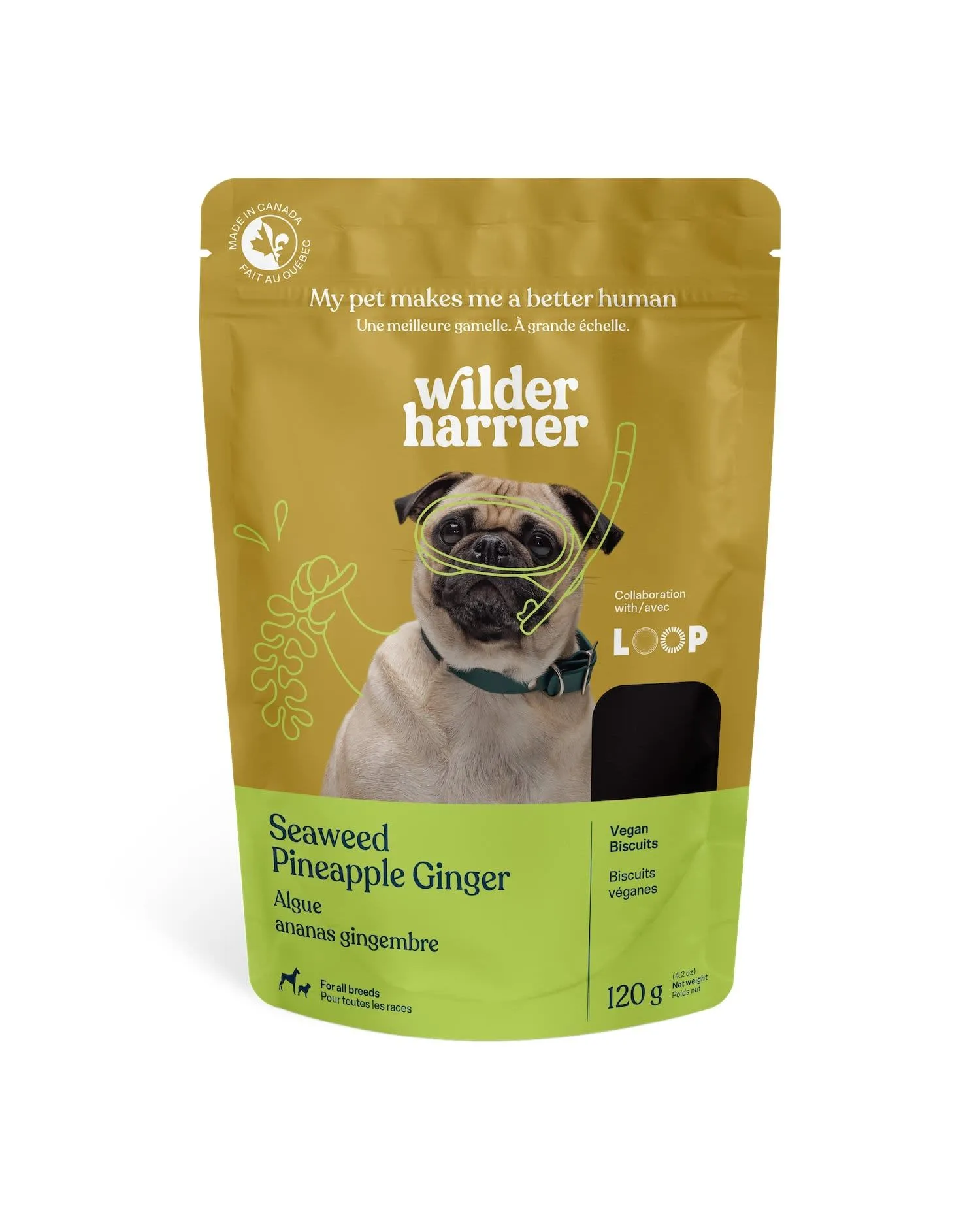 Délicieux biscuits vegan pour chien à l’ananas et au gingembre de la marque Wilder Harrier.