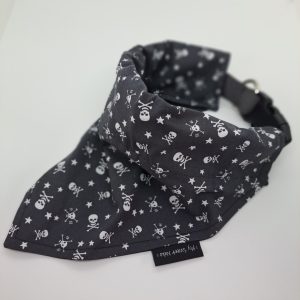 Bandana en coton noir pour chiens et chats avec des mini crânes