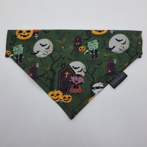 Bandana en coton vert pour chiens et chats avec vampires, monstres, momies et citrouilles