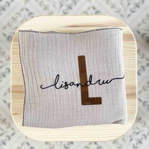 Lange Personnalisé Signature Taupe – Élégance et Douceur pour Bébé