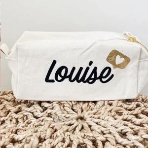Trousse de Toilette en Coton Personnalisée – Prénom et Initiales pour un Cadeau Pratique et Stylé !