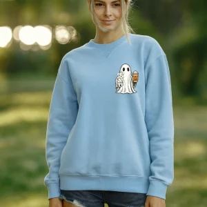 Sweatshirt bleu – Fantôme et son animal à personnaliser