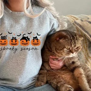 Sweatshirt gris – Citrouilles chats